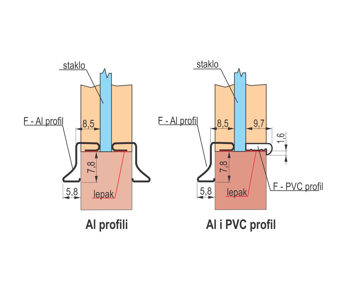 Završna obrada profila je hemijska eloksaža.